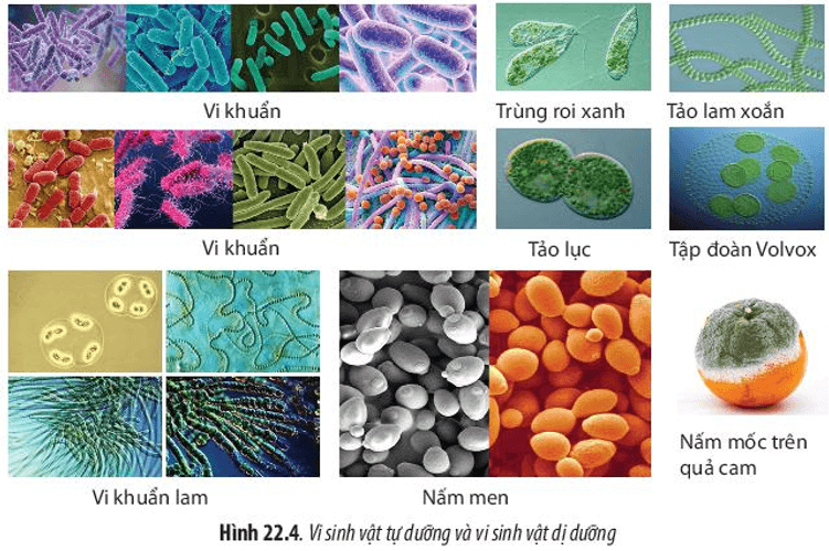 Câu hỏi 4 SGK Sinh 10 Chân trời sáng tạo Bài 22 (trang 107): Hãy sắp xếp các loài vi sinh vật trong Hình 22.4 vào các kiểu dinh dưỡng cho phù hợp.