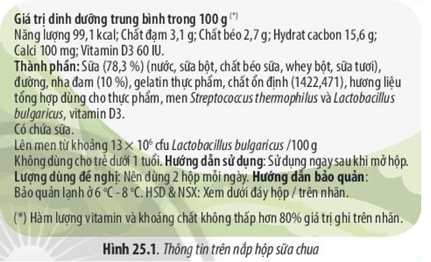 Câu hỏi mở đầu SGK Sinh 10 Chân trời sáng tạo Bài 25 (trang 119): Hãy đọc những thông tin in trên phần nắp để tìm hiểu cách bảo quản và thành phần vi khuẩn có trong hộp sữa chua. Vào mùa hè, một số cửa hàng tạp hoá để các lốc sữa chua trên kệ ở nhiệt độ thường (khoảng 28 – 30°C). Một vài hộp sữa chua có hiện tượng phồng nắp lên. Hãy nhận xét cách bảo quản sữa chua của cửa hàng tạp hóa trên và giải thích vì sao nắp hộp sữa bị phồng lên.