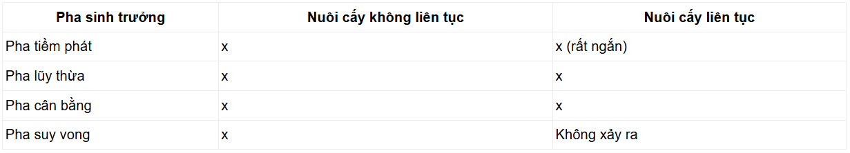 * So sánh sự sinh trưởng của quần thể vi khuẩn trong nuôi cấy liên tục và không liên tục: