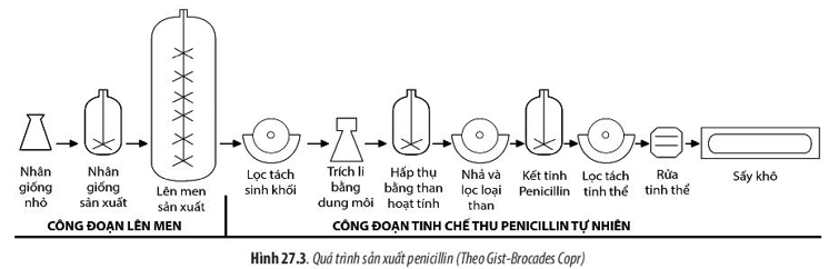 Câu hỏi 4 SGK Sinh 10 Chân trời sáng tạo Bài 27 (trang 132): Quan sát Hình 27.3, hãy phân tích quy trình sản xuất penicillin.