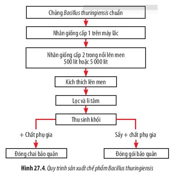 Câu hỏi 5 SGK Sinh 10 Chân trời sáng tạo Bài 27 (trang 133): Quan sát Hình 27.4, hãy mô tả quá trình sản xuất thuốc trừ sâu Bt.