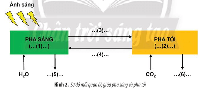 Bài tập 5: Bổ sung thông tin vào Hình 2 để hoàn thành sơ đồ về mối quan hệ giữa pha sáng và pha tối của quá trình quang hợp.