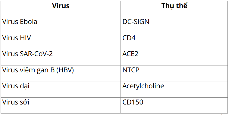 Bài tập 2: Hãy kể tên một số virus gây bệnh ở người và chỉ ra các thụ thể trên tế bào vật chủ của các virus này.