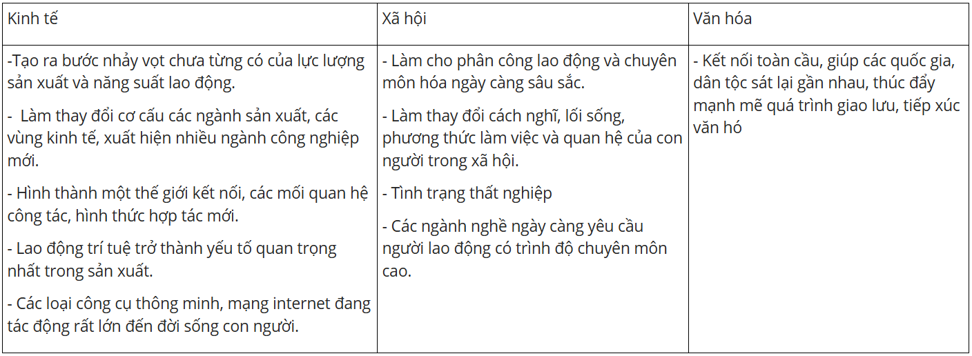 - Biến đổi sâu sắc toàn bộ diện mạo của đời sống xã hội cũng như nền kinh tế toàn cầu.