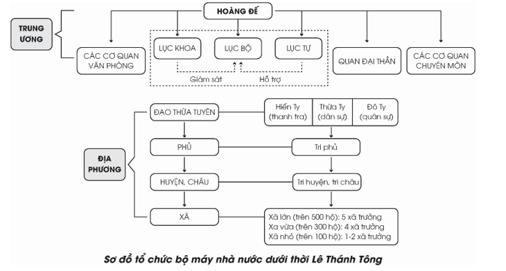 Luyện tập 2 SGK Giải Sử 11 Cánh Diều Bài 10 (trang 71): Vẽ sơ đồ tổ chức bộ máy chính quyền trung ương thời Lê sơ từ sau cải cách của Lê Thánh Tông.