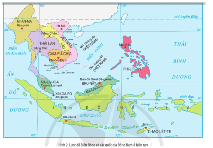 Câu hỏi mục 1 SGK Giải Sử 11 Cánh Diều Bài 12 (trang 78): Đọc thông tin và quan sát Hình 2, xác định vị trí của Biển Đông trên lược đồ.
