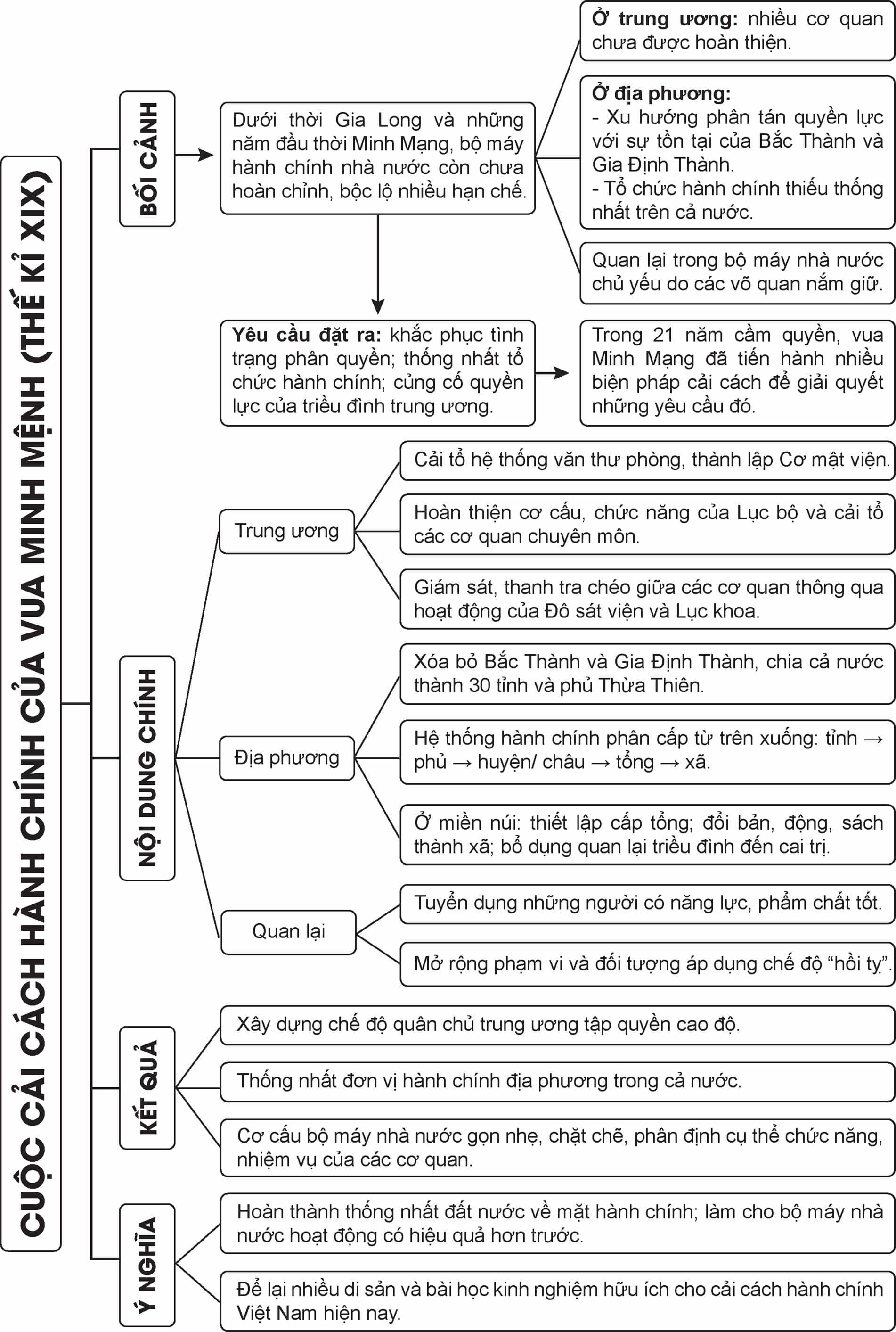 + Năm 1831 - 1832, vua Minh Mạng triển khai cải cách hành chính địa phương quy mô lớn trên cả nước. Theo đó, Bắc thành và Gia Định thành bị bãi bỏ, đổi các dinh, trấn thành tỉnh. Cả nước được chia làm 30 tỉnh và phủ Thừa Thiên (Kinh sư).