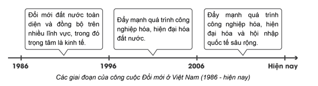 Vẽ sơ đồ nội dung các giai đoạn của công cuộc Đối mới ở Việt Nam từ năm 1986 đến nay.