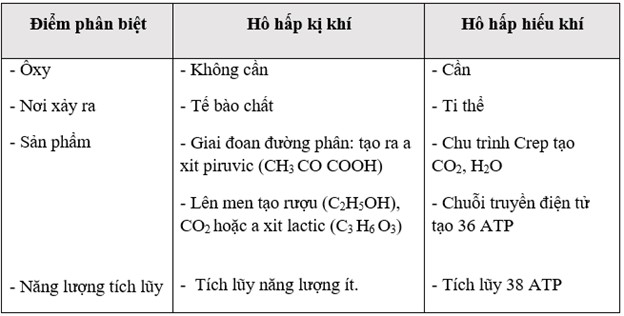 Phân biệt hô hấp hiếu khí và hô hấp kị khí: