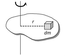 - Ta có thể xem vật thể được tạo bởi vô số điểm có khối lượng, và mômen quán tính của vật có khối lượng đó đơn giản được tính bằng khối lượng của vật thể đó nhân với bình phương bán kính (khoảng cách đến trục quay).