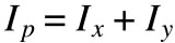 - Mômen quán tính cực (ký hiệu ở đây là Ip ) cũng có thể được tính bằng tổng các mômen quán tính tiết diện phẳng trục x và trục y (I x và I y ).
