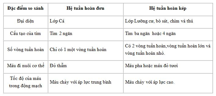 3. Phân biệt hệ tuần hoàn đơn và hệ tuần hoàn kép