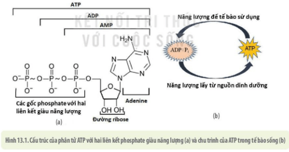 Câu hỏi 2 SGK Sinh 10 Kết nối tri thức Bài 13 (trang 80): Đọc thông tin mục I.2 kết hợp quan sát hình 13.1, nêu cấu tạo và chức năng của ATP. Phân tử ATP mang năng lượng loại nào? Vì sao nói ATP là “đồng tiền” năng lượng của tế bào?