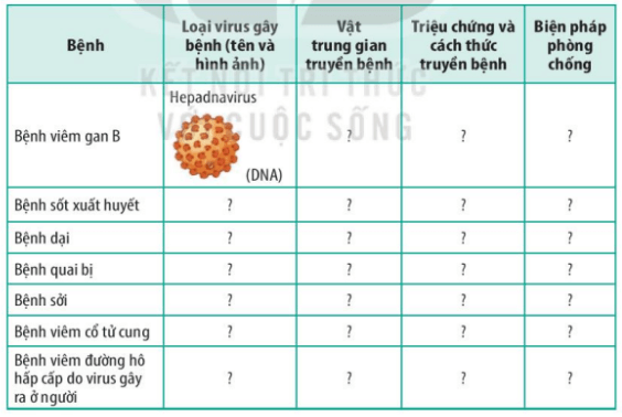 a) Báo cáo kết quả điều tra một số bệnh do virus ở người và ở vật nuôi, cây trồng theo gợi ý sau: