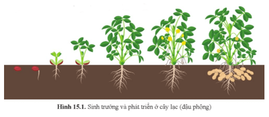 Câu hỏi SGK Sinh 11 Cánh Diều Bài 15 (trang 101): Quan sát hình 15.1, cho biết sự sinh trưởng và phát triển ở cây lạc (đậu phộng) diễn ra như thế nào?