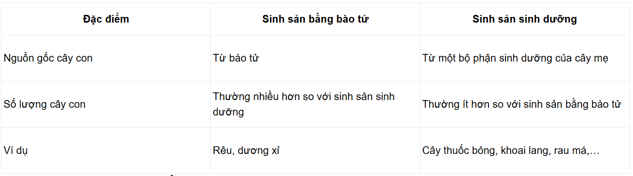 Luyện tập SGK Sinh 11 Cánh Diều Bài 21 (trang 139): So sánh sinh sản vô tính và sinh sản hữu tính ở thực vật.