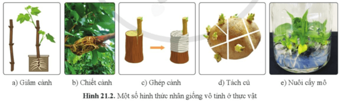 Câu hỏi SGK Sinh 11 Cánh Diều Bài 21 (trang 137): Quan sát hình 21.2, phân biệt một số hình thức nhân giống vô tính ở thực vật.