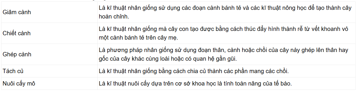 2. Các phương pháp nhân giống vô tính ở thực vật và ứng dụng