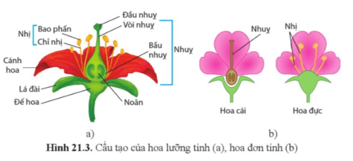 - Hoa lưỡng tính gồm: đế hoa, đài hoa (lá đài), tràng (cánh) hoa, bộ nhị hoa và bộ nhụy hoa.