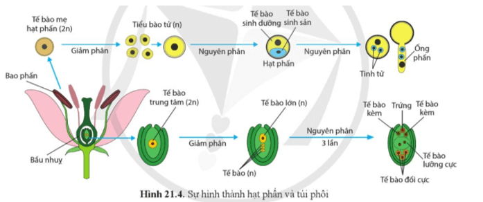 Câu hỏi SGK Sinh 11 Cánh Diều Bài 21 (trang 138): Quan sát hình 21.4, mô tả quá trình hình thành hạt phấn, túi phôi.