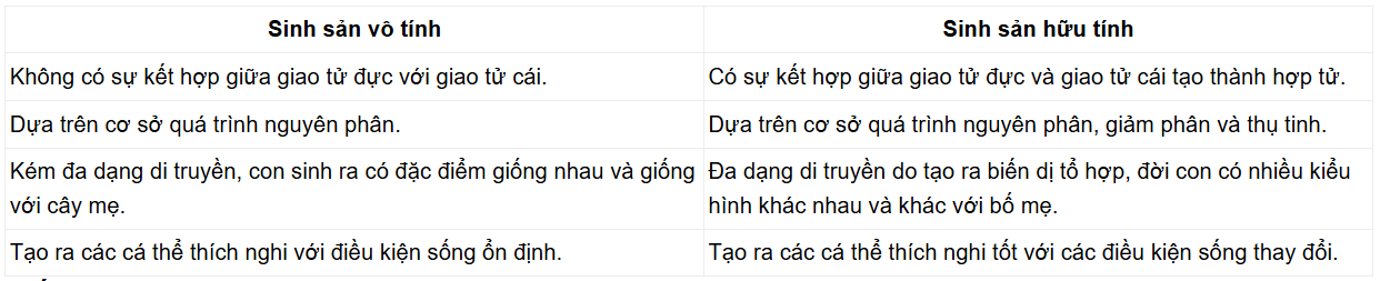 - Giống nhau: Đều tạo ra những cá thể mới, đảm bảo sự phát triển liên tục của loài.