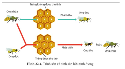 Câu hỏi 2 SGK Sinh 11 Cánh Diều Bài 22 (trang 144): Quan sát hình 22.4, cho biết sự sinh ra ong chúa và ong thợ so với ong đực khác nhau như thế nào?