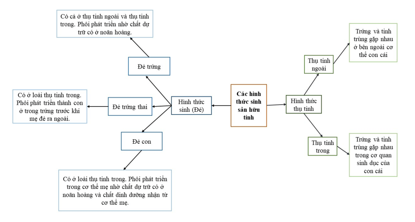 Câu hỏi SGK Sinh 11 Cánh Diều Bài 22 (trang 144): Vẽ sơ đồ tư duy phân biệt các hình thức sinh sản hữu tính.