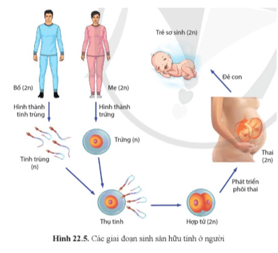 Câu hỏi SGK Sinh 11 Cánh Diều Bài 22 (trang 145): Quan sát hình 22.5, nêu tên và trình bày đặc điểm bốn giai đoạn của quá trình sinh sản ở người.