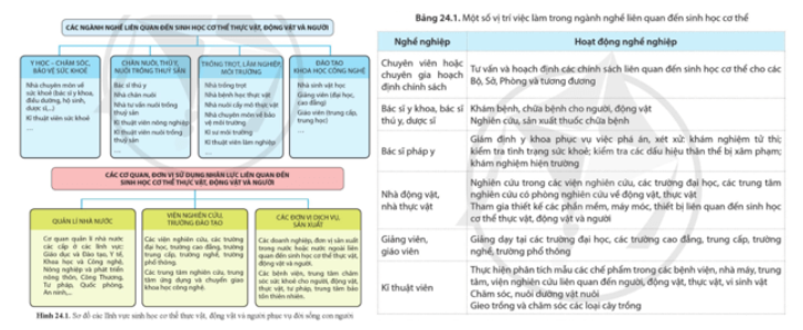 Câu hỏi SGK Sinh 11 Cánh Diều Bài 24 (trang 155): Quan sát hình 24.1, cho biết kiến thức sinh học có thể có tiềm năng như thế nào trong việc lựa chọn nghề nghiệp.