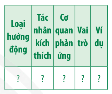 Câu hỏi 3 SGK Sinh 11 Chân trời sáng tạo Bài 15 (trang 95): Hãy xác định kiểu vận động cảm ứng và tác nhân kích thích trong các trường hợp sau:
