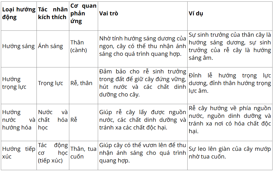 II. Các hình thức biểu hiện và vai trò của cảm ứng ở thực vật
