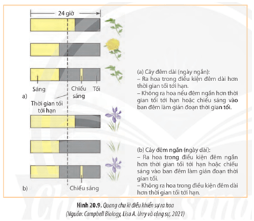 Luyện tập 2 SGK Sinh 11 Chân trời sáng tạo Bài 20 (trang 139): Quan sát Hình 20.9, hãy giải thích vì sao chỉ cần chiếu sáng vào ban đêm mà có thể ngăn chặn sự ra hoa ở hình (a) và kích thích sự ra hoa ở hình (b)