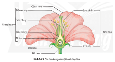 Câu hỏi 4 SGK Sinh 11 Chân trời sáng tạo Bài 24 (trang 161): Quan sát Hình 24.5 và dựa vào kiến thức đã học, hãy mô tả cấu tạo chung của hoa.