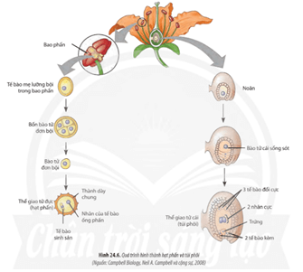 Câu hỏi 5 SGK Sinh 11 Chân trời sáng tạo Bài 24 (trang 162): Quan sát Hình 24.6, hãy mô tả quá trình hình thành hạt phấn và túi phôi. Hai quá trình này có đặc điểm gì khác nhau?