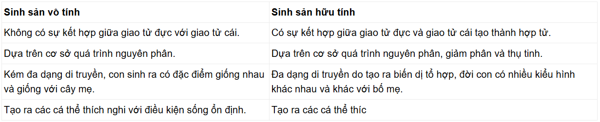 Luyện tập SGK Sinh 11 Chân trời sáng tạo Bài 24 (trang 164): Lập bảng so sánh sinh sản vô tính và sinh sản hữu tính ở thực vật.