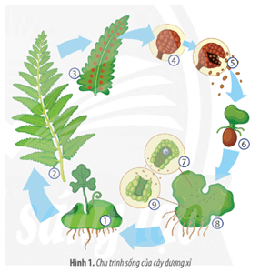 Bài tập 5: Hãy chú thích Hình 1 và vẽ sơ đồ vòng đời của dương xỉ thể hiện rõ sự xen kẽ giữa sinh sản vô tính và sinh sản hữu tính