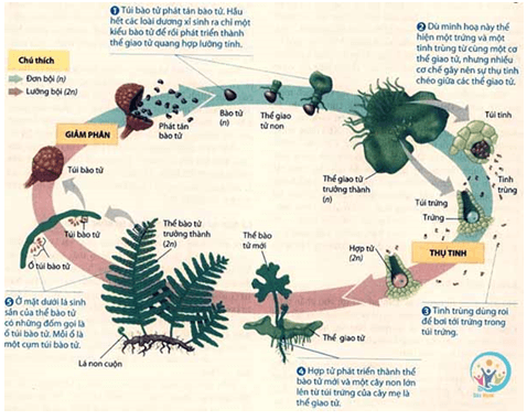 * Sơ đồ đồ vòng đời của dương xỉ thể hiện rõ sự xen kẽ giữa sinh sản vô tính và hữu tính:
