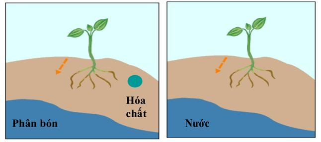 + Cây bí trồng cạnh một hố ủ phân có rễ mọc hướng về vùng đó => hướng nước