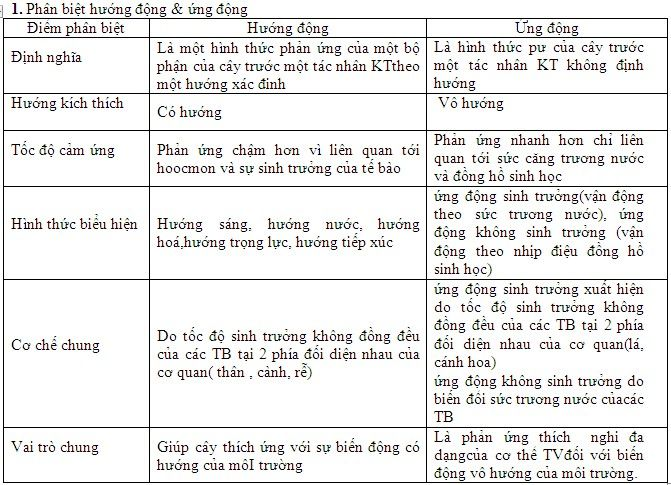 - Ứng động là vận động phản ứng của cây trước những tác nhân kích thích không định hướng của môi trường (do tác động từ nhiều phía của môi trường).