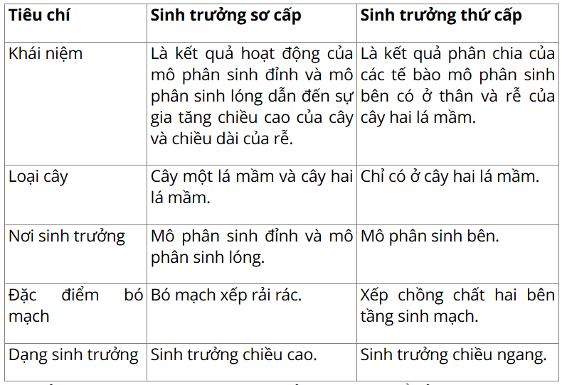 II. So sánh sinh trưởng sơ cấp và sinh trưởng thứ cấp