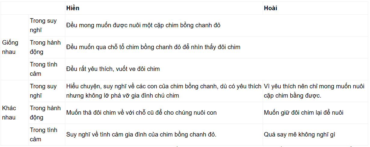 Câu hỏi 3 SGK Ngữ văn 8 CTST – Soạn bài Bồng chanh đỏ (trang 25): Phân tích một số điểm giống và khác nhau (trong suy nghĩ, tình cảm, hành động) của Hiền và Hoài. Qua việc miêu tả hai nhân vật này, nhà văn thể hiện cách nhìn cuộc sống, con người như thế nào?
