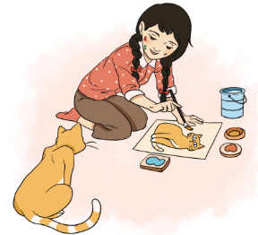 Truyện kể về việc người anh trai có cô em gái tên là Kiều Phương có tài năng hội họa tiềm ẩn. Do cô bẻ hay bôi bẩn nên anh trai đã đặt biệt danh là Mèo. Người anh trai tưởng cô bé chỉ chế tạo thuốc vẽ nghịch chơi. Nhưng không ngờ, nhờ chú Tiến Lê phát hiện ra, cả nhà mới biết đến tài năng hội họa của Kiều phương.