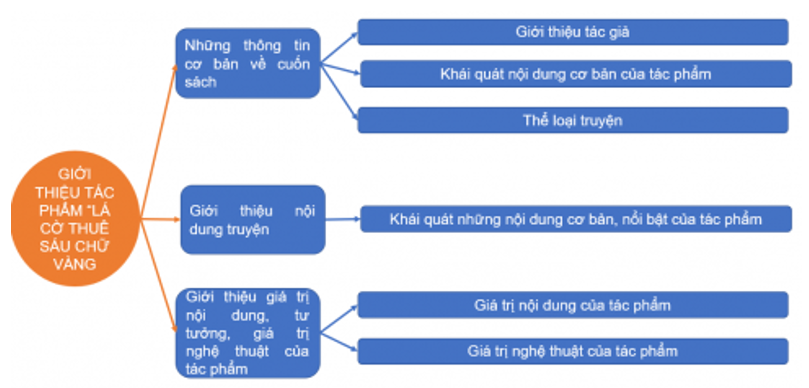 Câu hỏi 2 SGK Ngữ văn 8 Cánh diều – Soạn bài Lá cờ thêu sáu chữ vàng – tác phẩm không bao giờ cũ dành cho thiếu nhi (trang 108): Hãy vẽ sơ đồ tư duy để thể hiện ý chính và thông tin cụ thể làm rõ cho ý chính đó của mỗi phần trong văn bản