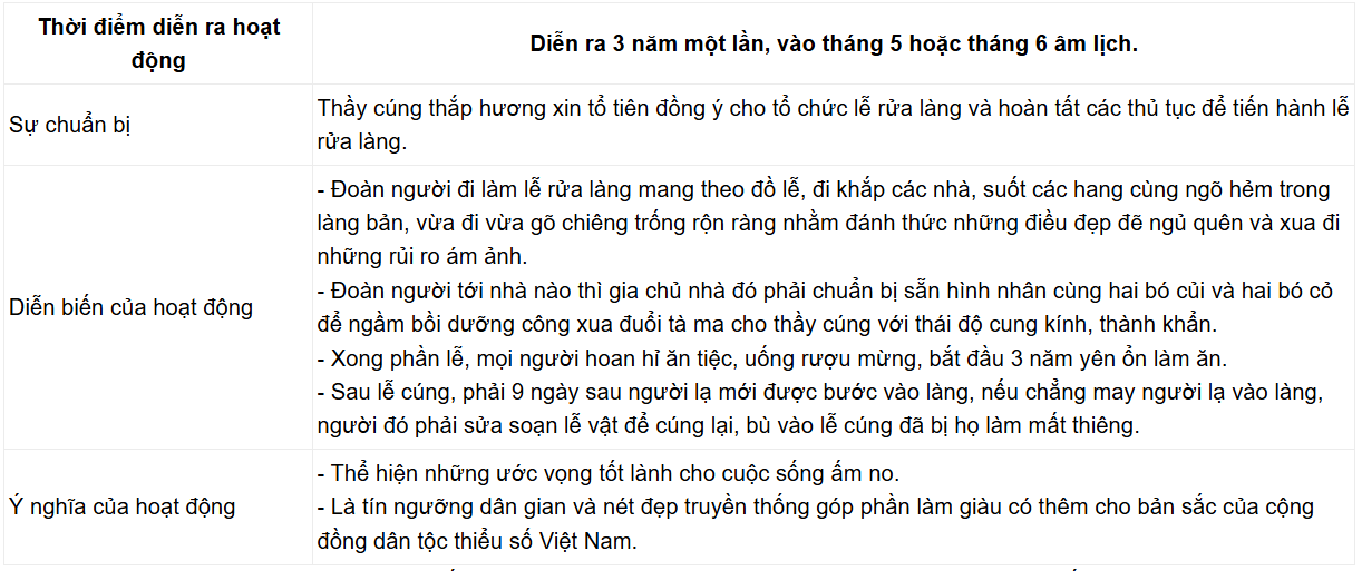 Câu 3: Theo dõi: Thời điểm diễn ra lễ rửa làng và những việc cần chuẩn bị cho ngày lễ?