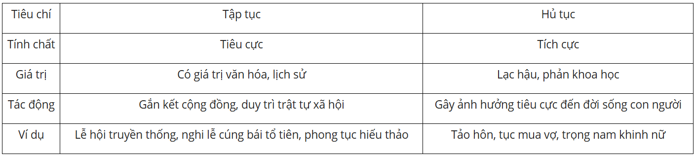 Câu hỏi 2: Bạn hãy phân biệt tập tục (phong tục, tập quán) và hủ tục. Nêu ví dụ để làm rõ ý kiến của mình.