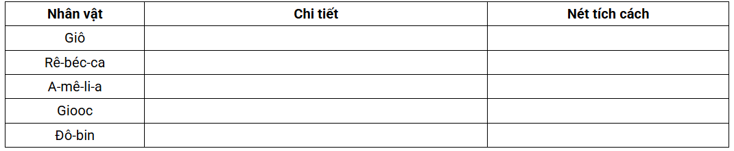 Câu 3 (trang 40 sgk Ngữ văn 12 Tập 2): Liệt kê vào bảng sau một số chi tiết, cử chỉ, hành động liên quan đến các nhân vật trong văn bản, từ đó rút ra nét tính cách nổi bật của mỗi nhân vật (làm vào vở):