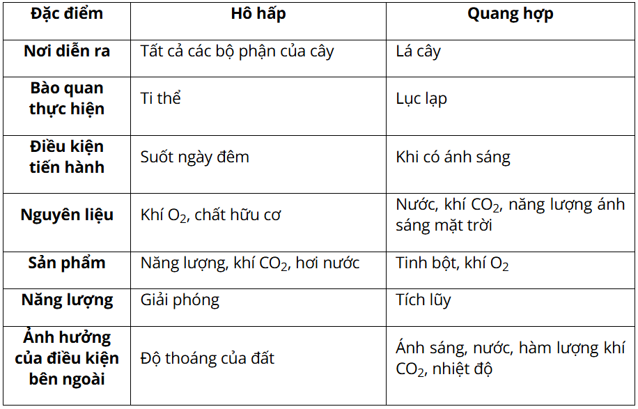 1. Sự giống và khác nhau của quá trình quang hợp và hô hấp ở thực vật