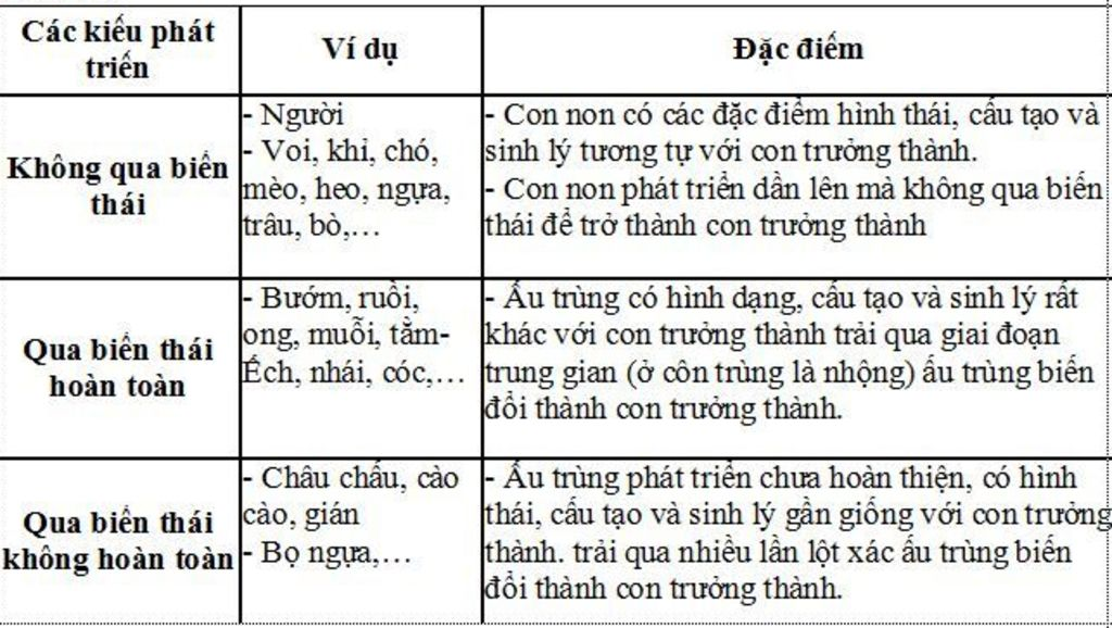 - Đa số động vật có xương sống (bò sát, chim, thú) và rất nhiều loài động vật không xương sống phát triển không qua biến thái.