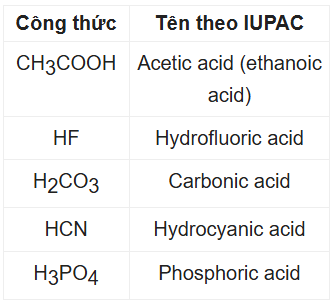 + Các acid như CH3COOH, H2CO3, H2SO3 là các acid yếu và các gốc acid tương ứng