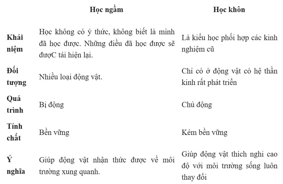 4. So sánh tập tính học ngầm và học khôn ở động vật